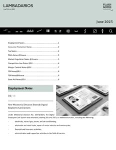 Pursuant to Ministerial Decision No. 35887/2025 issued by the Minister of Development, a formal system has been established for managing reports and complaints falling within the scope of the Interagency for Market Control Unit (“DIMEA”). The decision introduces specific evaluation criteria and procedures for handling submitted reports and complaints, as well as a methodology for planning supervisory actions. This includes administrative inspection procedures based on risk analysis and the categorization of reports and complaints following their assessment. The system applies to reports and complaints concerning violations of the rules governing: